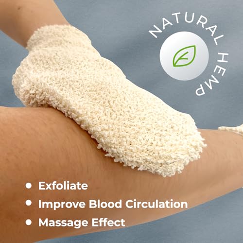 GUARD&MARINE Natural Shower Mitts – Hemp Bath Gloves for Skin Exfoliation, Mitt Washcloth for Body Scrub and Cleansing – Soft Loofah for Men and Women – Set of 2 Wash Mittens
