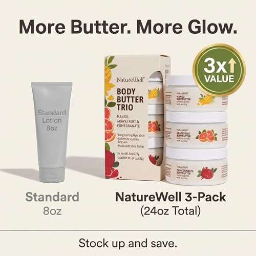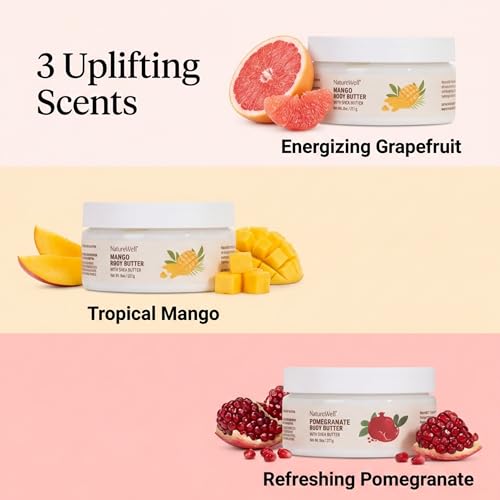 NATURE WELL Shea Body Butter Variety Pack, Includes Grapefruit, Mango, & Pomegranate, Provides Ultimate Nourishment & Hydration, 3 Pack (8 Oz Ea)