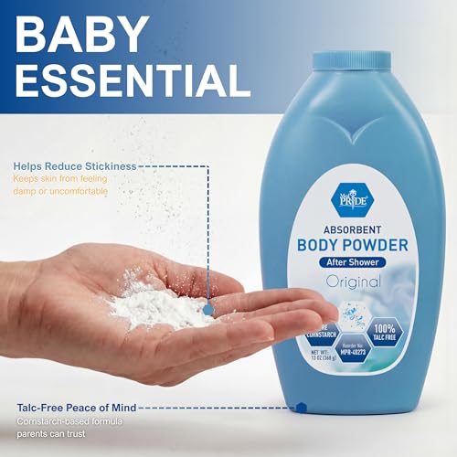 MED PRIDE Talc Free Cornstarch Body Powder Original Scent, Moisture Absorbing Skin Care for Daily Freshness, Cruelty Free Formula, 13 Ounce Bottle