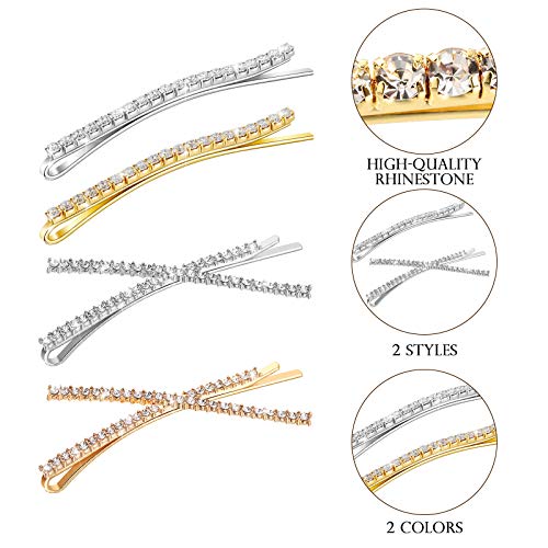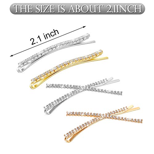 12 Pieces Rhinestone Bobby Pins Decorative Fancy Crystal Hair Clips Shiny Metal X Shaped Barrettes Bling Diamond Wedding Bridal Shower Hair Accessories for Women Ladies Girls (Gold, Silver)
