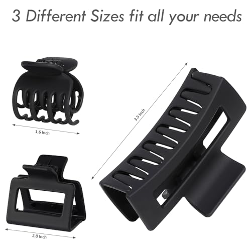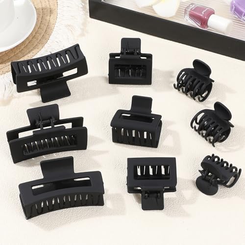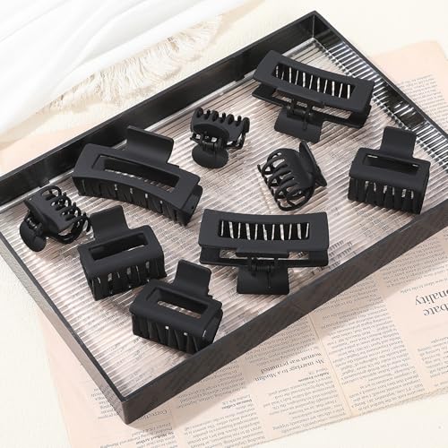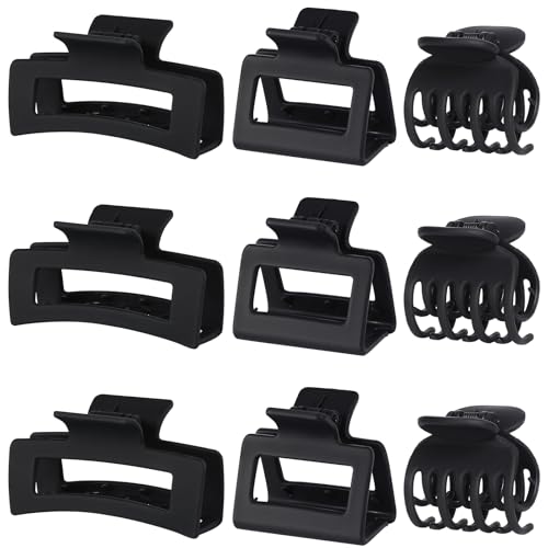 3 Style Hair Claw Clips 9 pcs Medium Claw Clips Hair Clips for Women Rectangle Claw for Thick Hair Square Hair Clips for Thin Hair Accessories for Women (Black)