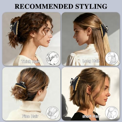 Premium Hair Clips for Women, 3 Inch Medium Claw Clips for Thick Thin Hair Women, Non-Slip French Black Hair Clip for Teen Girls, Hair Accessories for Girls, Valentine’s Day Gift for Her