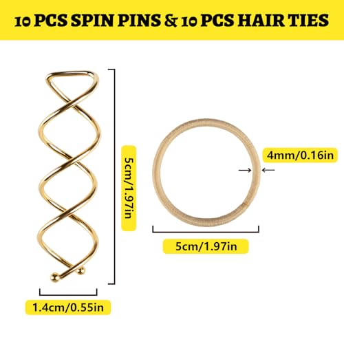 Teenitor 20Pcs Spiral Bobby Pins, Spiral Hair Pins Spin Pins for Hair, Hair Bun Maker, Hair Twist Bobby Pins for Buns Dance Accessories with 10 Hair Ties, Blonde