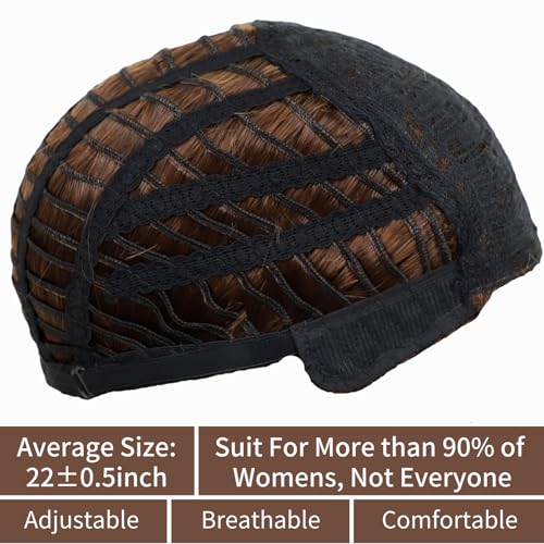 RENERSHOW Short Brown Bob Wigs for Women Brown Mixed Blonde Synthetic Wig with Bangs 10inch Average Size Natural Looking Daily Party Wig