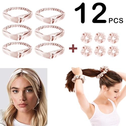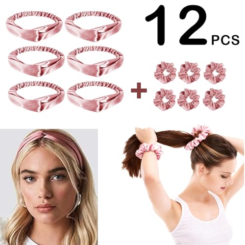 12Pcs Womens Satin Headband Silk Hairband Fashion Headbands Silky Hairbands Head Bands Hair Wraps Gifts Scrunchy