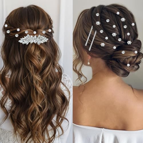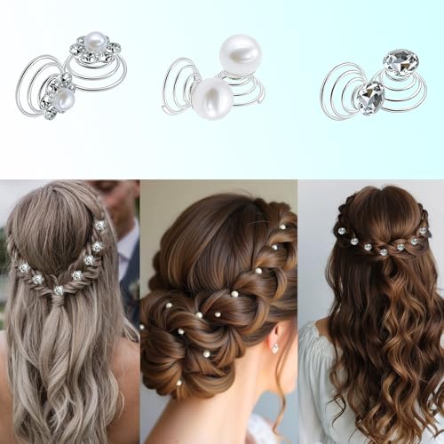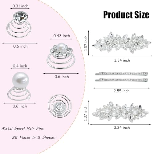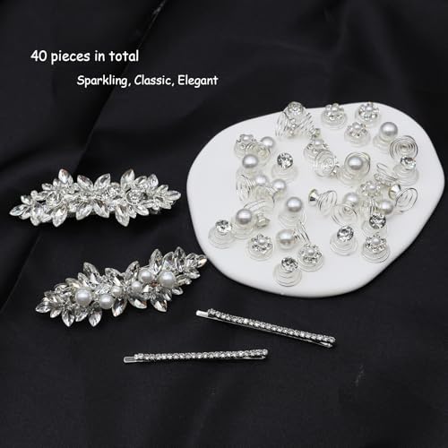 40 Pieces Rhinesetones Hair Clips, Include 4 Piece Crystal Hair Pins and 36 Pieces Spiral Hair Gems, Swirl Diamond Pearl Hairpins Flower Sparkling Hair Accessories for Wedding,brides, Party, Prom