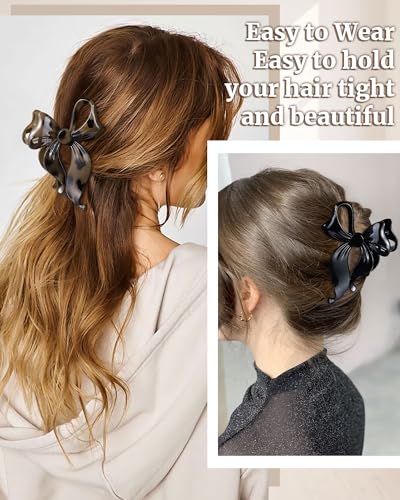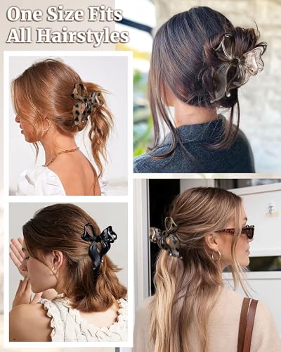 Mesovor 4 Pack Cute Bow Claw Clip for Women, Nonslip Large Matte Strong Hold Bows Hair Clips for Thin and Thick Hair | Chic Hair Styling Accessories (4.1″ Black, Leopard)