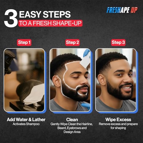 Freshape Shampoo Infused Hairline and Beard Wipes– Disposable Shampoo Wipes for Barbers – Quick Use Hairline Wipe for Prepping Shape-Ups & Lineups for Barbers, Stylists and Braiders (Pack Of 3)