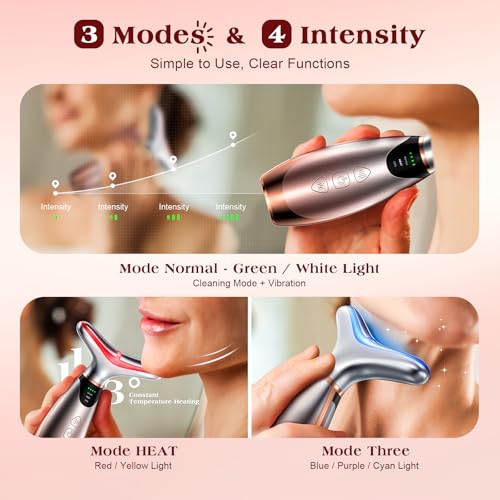 Facial Massager, 7 Colors Red Light Therapy for Face and Neck, Face Lift Device with 113°F Heating Vibration for Multi Skin Care