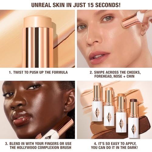 Charlotte Tilbury Unreal Skin Tint & Sheer Glow Hydrating Foundation Stick – Cream Foundation Makeup with Sheer-to-Light Coverage & a Buildable Formula – Blurring, Smoothing & Nourishing
