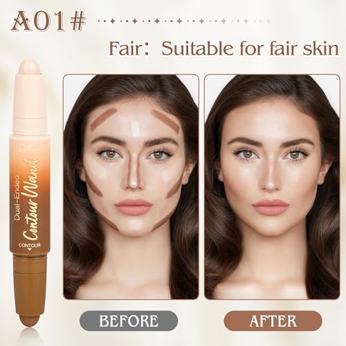 Contour Highlighter Stick,2-in-1 Dual-Ended Cream Bronzer & Highlighter Sticks Pen for Face Body Contouring Makeup- Buildable,Waterproof, Easy to Apply Suitable for Beginners,01Nuetral Nude + Beige