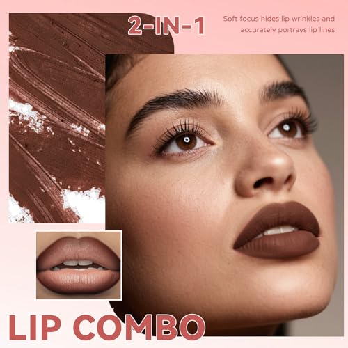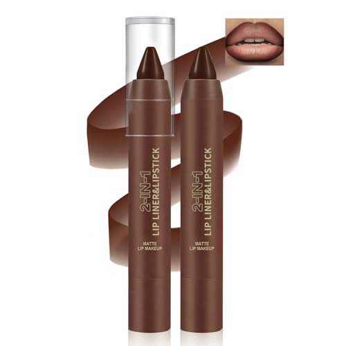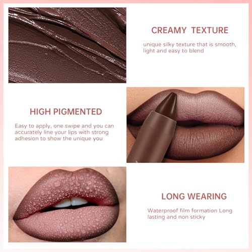 2 in 1 Ombre Dark Brown Lip Crayon, Matte Velvet Smooth Rich Creamy Gradient Lip Liner and Lipstick Combo, Multi-Use Long Lasting Plumping Lip Pencil, High Pigmented Lip Line Sketch Makeup#06