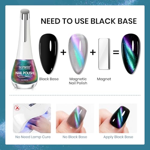 Cat Eye Nail Polish Non Gel with Magnet Quick Dry Cateye Magnetic Nail Polish for Fingernail Air Drying Fast Lacquer Manicure Gift For Women Girls 16ml, 0.54fl oz