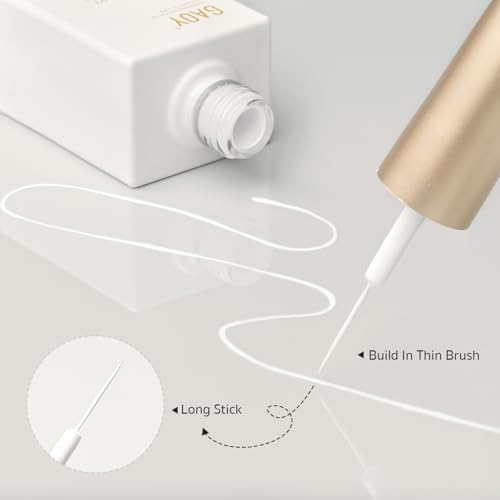 GAOY White Swirl Gel Nail Polish Art Liner, 12ml Classic Color Nail Paint Design with Thin Brush, UV Light Cure for DIY French Manicure at Home
