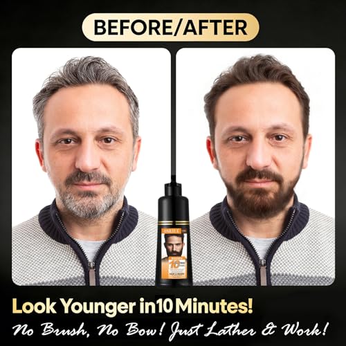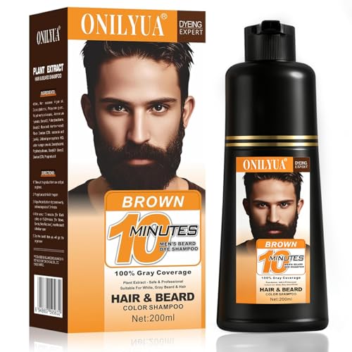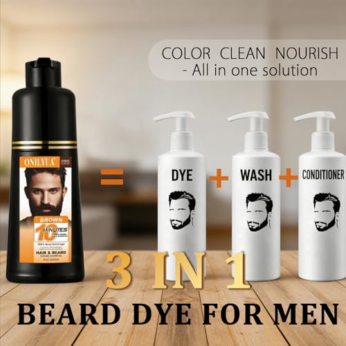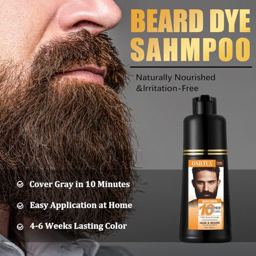 Beard Dye For Men, 10-Minute Instant Gray Coverage, 3 in 1 Brown Mens Beard & Mustache Dye Shampoo with 4-6 Weeks Lasting Color, Nourishing with Argan Oil & Noni Fruit, No-Mess Application 6.76 Fl Oz
