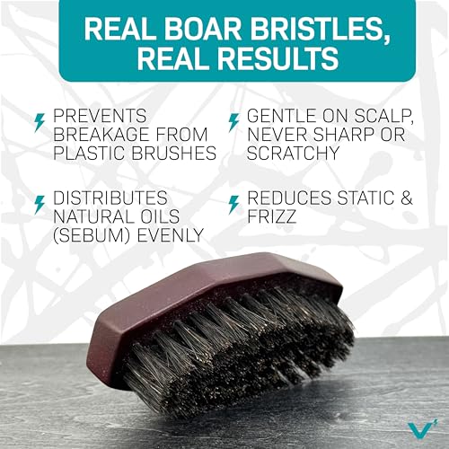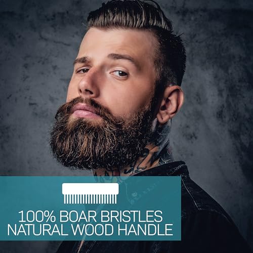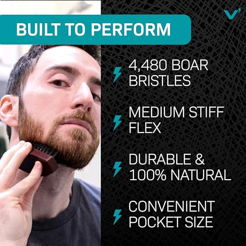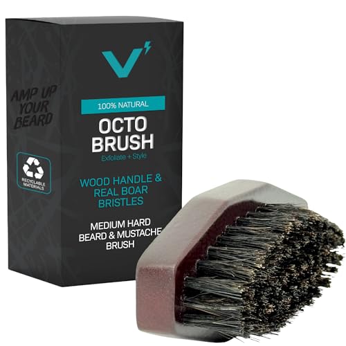 VOLT Grooming Octo Beard Brush for Men, 100% Natural Boar Bristle Brush with Wooden Handle, Medium Hardness, Detangles, Softens & Styles for Beard Care, Compact Travel Size, Short to Medium Beards