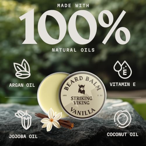 Striking Viking Beard Balm for Men – 2 oz, Vanilla Scent – Light Hold Moisturizer & Beard Conditioner for Men That Softens & Nourishes Coarse Facial Hair with Shea Butter & Tea Tree Oil