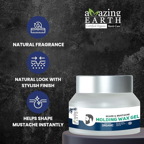 AMAzing Earth Beard & Mustache Holding Wax Gel for Men – Certified Organic, Strong Hold, Styling, Argan Oil, Chemical Free, 100% Vegan & Cruelty Free – 50gm