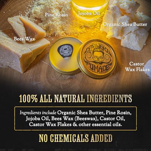 Hair Pomade For Men Grooming Styling Hair or Beard with Beeswax Medium Hold & Shine Like Gel Mousse Cream Or Grease 2 Ounces Natural Handmade in USA Citrus Scented & Essential Oils By Death Grip
