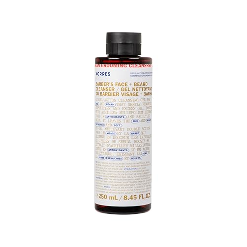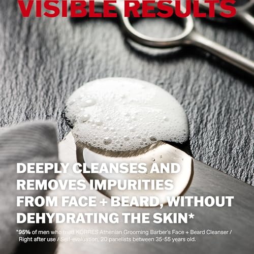 KORRES Athenian Grooming Cleansing Gel for Face & Beard, Deep Cleanser with Achillea Millefolium Extract & Salicylic Acid, Removes Oil & Dirt, Vegan, Silicone & Paraben Free, Matte Finish, 8.45 Fl Oz