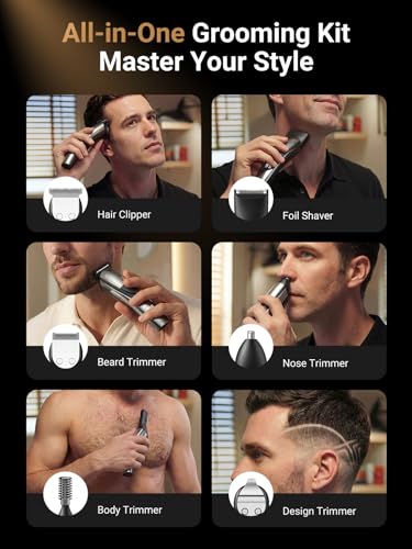SHPAVVER Beard Trimmer for Men: Professional Barber Hair Clippers – 12-in-1 Cordless Grooming Kit – Waterproof Electric Razor with Turbo Speed & Precision Blades