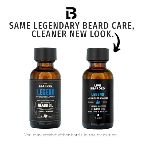 Live Bearded Beard Oil, 1 fl oz – Premium All-Natural Jojoba – Made in the USA – Hair and Skin Care for Men with Dry, Flaky Patches | Legend Scent – Sandalwood, Vanilla