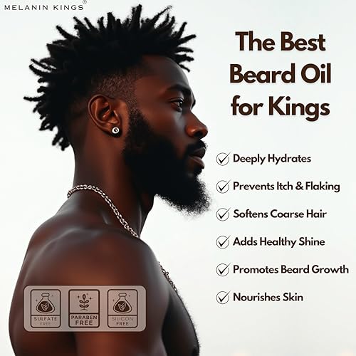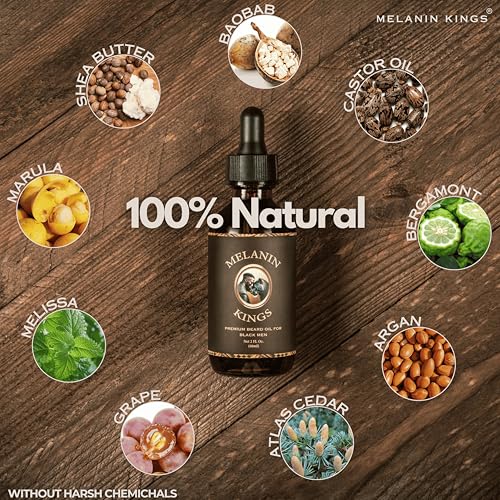 Melanin Kings Beard Oil for Black Men – Specialized formula for Black Men – With ancient African Ingredients – 100% Natural Ingredients – 2fl. Oz. – Kenyan Sandalwood Scent