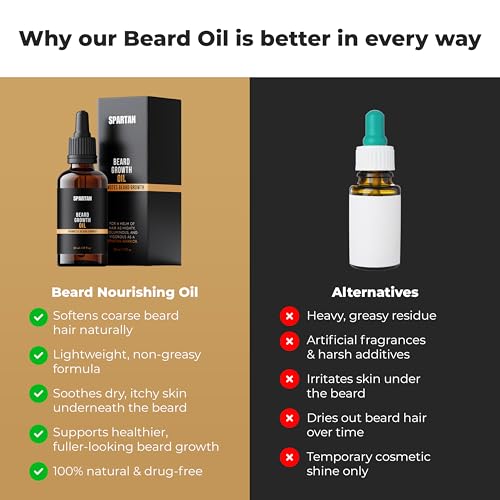 SPARTAN Beard Oil for Men – Natural Conditioning and Softening Formula – Lightweight Hydrating Oil for Smooth, Well-Maintained Beard – Daily Grooming Essential – 1pc, 4oz