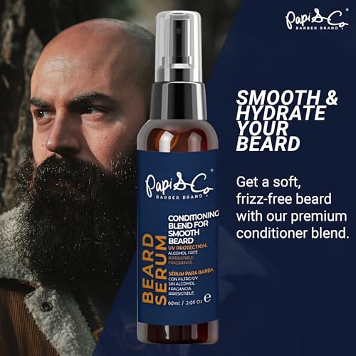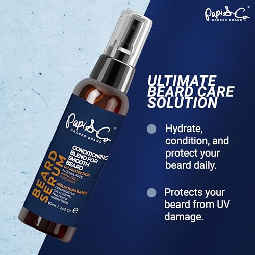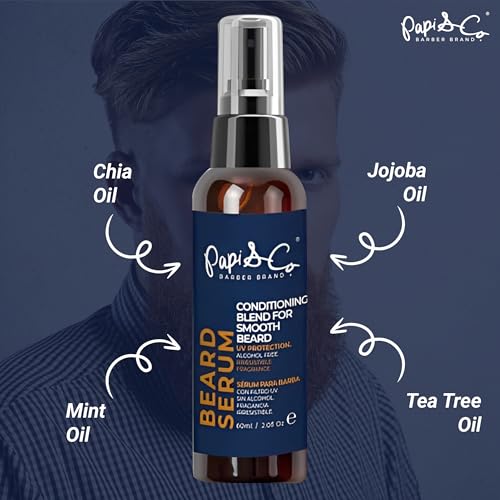 PAPI & CO. – Beard Serum, Beard Moisturizer for Men, Beard Conditioner with UV Protection, Beard Oil with Tea Tree, Chia, Jojoba, & Mint Oils, Beard Softener for Men, 60 mL