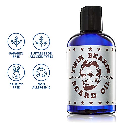 Twin Beards Sandalwood Beard Oil for Men | Beard Conditioner for Men | Essential Beard Care | Beard Softener for Men during Beard Growth | Beard Moisturizer | Mens Beard Oil Sandalwood | 4 oz