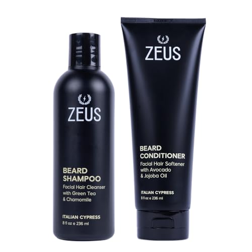 ZEUS Beard Wash Set for Men, Shampoo & Conditioner Duo with Green Tea, Chamomile & Essential Oils to Hydrates, Softens & Strengthens Facial Hair and Skin (Made in USA) Italian Cypress