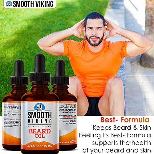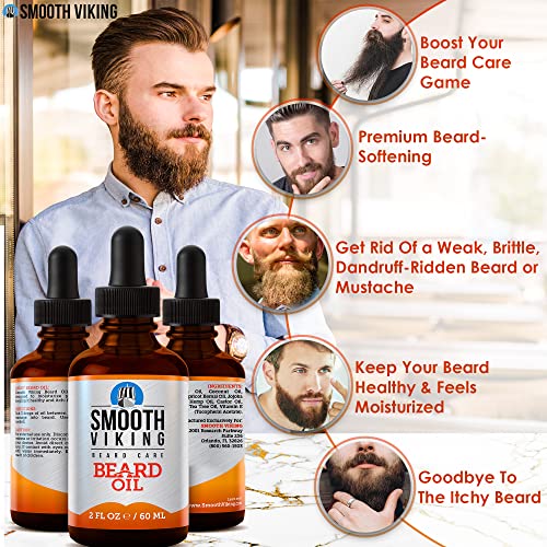 Smooth Viking Beard and Mustache Oil for Men – Argan Formula for Moisturizing, Grooming, and Soothing Dry Skin (2 Oz)
