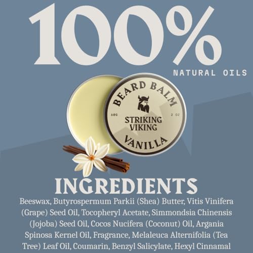 Striking Viking Beard Oil and Balm – Leave in Beard Conditioner – Tames, Styles, Softens, and Moisturizes Beards and Mustache – Made with All Natural and Organic Argan and Jojobo Oils, Vanilla