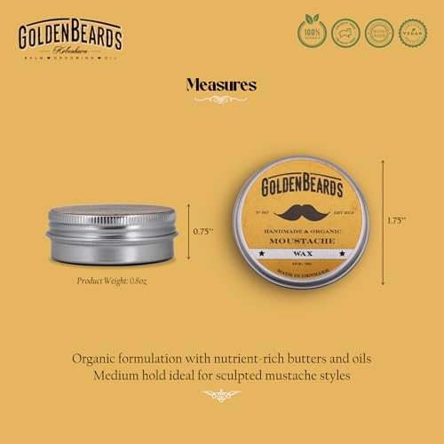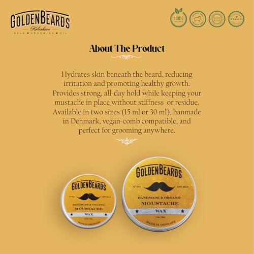 Golden Beards Mustache Wax – Organic & Natural Medium Hold Styling Wax for Men, Nourishing Beeswax & Oils, Handmade in Denmark – 15ml (0.5oz)