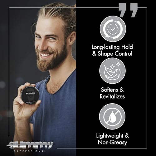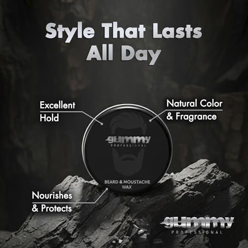 Gummy Professional Beard and Moustache Wax – Extra Long-Lasting Hold for Shaping Texture and Control – Nourishing & Moisturizing Formula with Humidity Resistance for Groomed Facial Hair – 2.4 Ounce