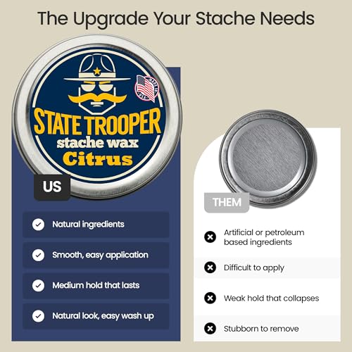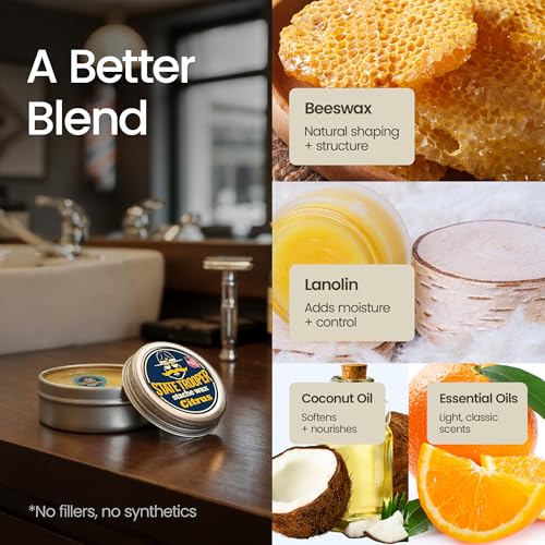 Medium Hold Mustache Wax with Beeswax, Coconut Oil & Lanolin – Natural Moustache Grooming & Styling Wax with Citrus Scent – Nourishing Mustache Conditioner & Sculpting Wax