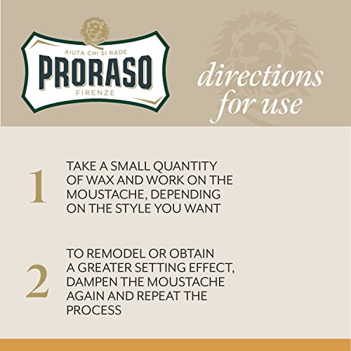 Proraso Medium Hold Moustache Wax – Natural Finish Beard & Moustache Styling Wax – Cream-to-wax Formula – 0.5oz