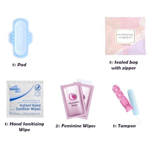 Light Rose Style Menstrual Kit All-in-One 60 Pack | Convenience on The Go | Period Kit Pack for Travelling, Tweens & Teenagers or just When You’re Out | Individually Wrapped Feminine Hygiene Product