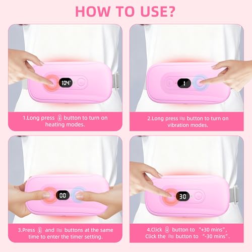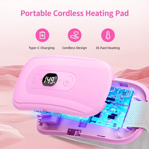 Portable Heating Pad Period Cramps: 2 Timer 6 Heat Levels 6 Vibration Modes Cordless Electric Heating Pad for Back Pain Relief Menstrual Heating Pad Mothers Day Gifts Pink
