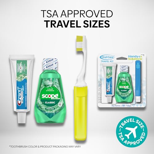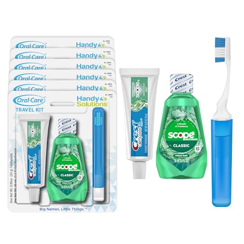 Oral Care 3-Piece Travel Size Set w/Mouthwash, Toothpaste, & Folding Toothbrush (Pack of 6), TSA Approved