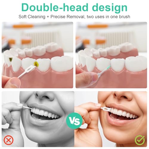 Dental Floss Picks, 200 Count, Soft Rubber Brush Head, Interdental Brushes with Convenient Carry Case,Dual-Ended Toothpick Travel Teeth Cleaning Tools (Green)
