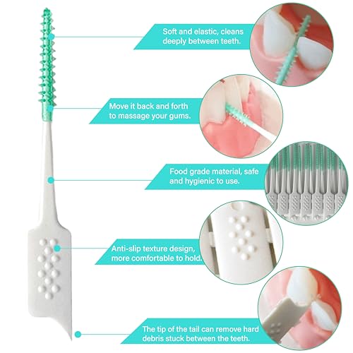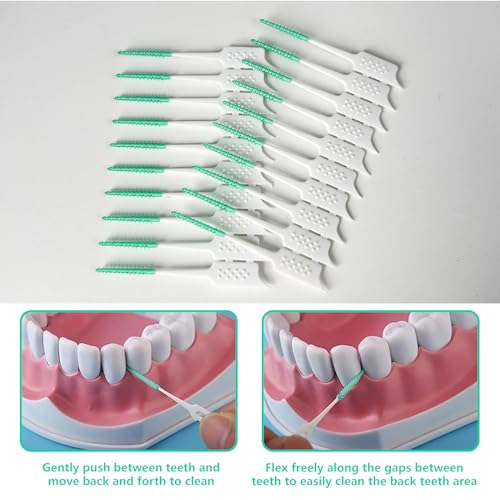 Dental Floss Picks Soft Silicone interdental Brush, Braces Brush, Floss Picks for Teeth, Disposable interdental Brush, Suitable for Cleaning Teeth Health(Green, 160pcs)