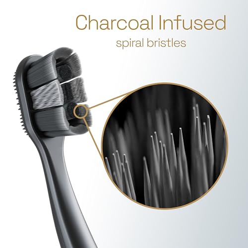 The Colgate Total Active Prevention Whitening Toothbrush is a soft toothbrush with charcoal infused spiral and Floss-Tip bristles (1). This soft bristle toothbrush fights the root cause* of cavities, plaque, gingivitis, bad breath, tartar buildup**, and stains*** and also helps remove surface stains to prevent stain buildup. The Colgate Total Active Prevention Whitening Black Toothbrush features 2x more† high-density soft Floss-Tip bristles (1) that reach deeper (2) along the gumline and between teeth to help clean hard to reach areas prone to dental problems. Help prevent stain buildup by removing surface stains with the Colgate Total Whitening Toothbrush Pack. This black toothbrush features specially engineered, high-density bristles to help polish away stains and disrupt plaque buildup so you can stay at the top of your oral care game for a clean mouth. Elevate your daily brushing routine and oral care with the Colgate Total Whitening Soft Adult Toothbrush. *caused by bacteria **fights tartar buildup by removing plaque ***by removing surface stains † vs. Colgate Extra Clean Toothbrush (1) this brush does not replace flossing (2) vs. an ordinary flat trim toothbrush