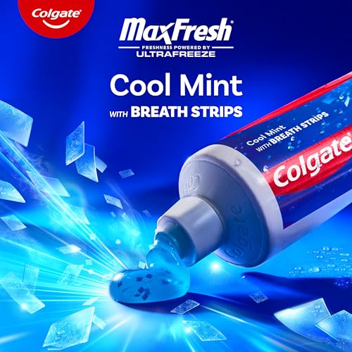 Release an instant blast of freshness with Colgate MaxFresh Cool Mint Toothpaste. Powered by Ultrafreeze, this 4 pack of invigorating peppermint toothpaste offers 10X longer-lasting cool for fresh breath*. These mint toothpaste tubes, with the help of Ultrafreeze and hundreds of mini breath strips, are bursting with freshness that lasts for hours. Colgate MaxFresh Toothpaste comes in a refreshing Cool Mint flavor that invigorates the brushing experience. However, it’s more than just a toothpaste for bad breath, Colgate MaxFresh Cool Mint Toothpaste is also a fluoride toothpaste and helps prevent cavities. With its refreshing Cool Mint flavor and hundreds of mini breath strips, Colgate MaxFresh Toothpaste leaves your breath feeling fresh for hours. Plus, the fluoride-based formula helps fight cavities. Get long-lasting fresh breath with Colgate MaxFresh Cool Mint Toothpaste. *vs. a regular Colgate fluoride toothpaste