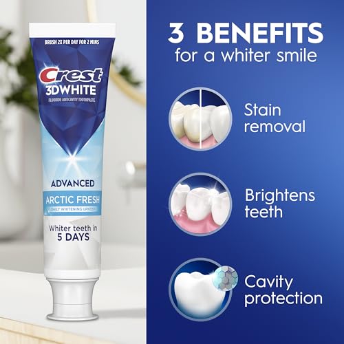 Crest 3D White Advanced Teeth Whitening Toothpaste, Arctic Fresh, 3.3 oz, Pack of 3