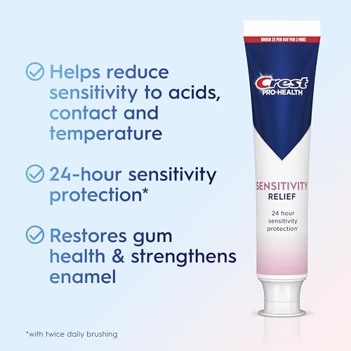 Crest Pro-Health Sensitivity Relief Toothpaste delivers fast relief from painful tooth sensitivity while strengthening enamel and restoring gum health. Formulated with advanced stannous fluoride, it creates a protective shield that blocks sensitivity triggers from food and drinks, providing lasting relief within days of use.* Healthy gums are the foundation of a healthy mouth. That’s why Crest Pro-Health Sensitivity Relief Toothpaste is designed not only to soothe sensitivity but also to fight harmful bacteria below the gumline. By helping prevent gum recession and strengthening enamel, this toothpaste protects against sensitivity at the source, while actively fighting gingivitis and cavities. Trust Crest, the #1 Gum Toothpaste Brand in America†, to deliver proven relief and protection for a healthier, stronger smile.