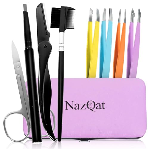 Exquisite 8-in-1 Eyebrow Kit for Women & Men – Luxury Eyebrow Grooming Kit with 4 Precision Tweezers For Eyebrows, Eyebrow Razor, Eyebrow Scissors, Eyebrow Brush/Comb & Pencil with Padded Case
