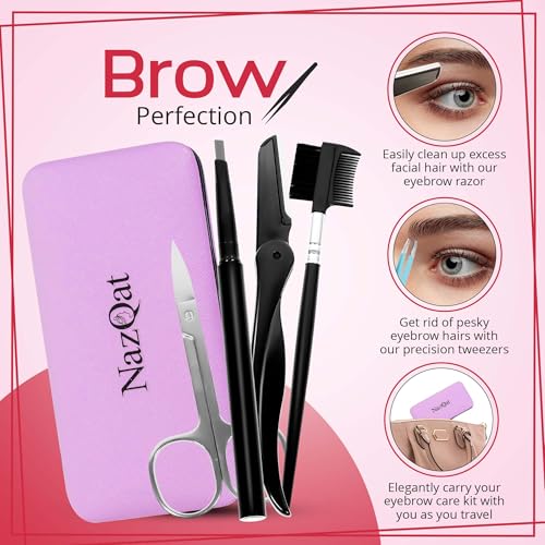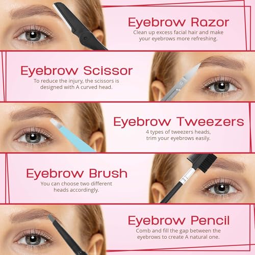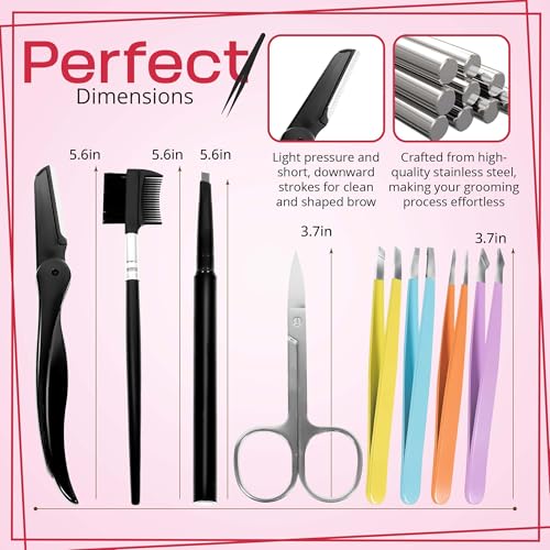 DURABLE STAINLESS STEEL CONSTRUCTION: Each eyebrow shaping tool is crafted from surgical-grade stainless steel for corrosion resistance, long-term sharpness, and hygienic performance. The soft, padded case keeps your grooming essentials impact-protected, organized, and travel-ready
