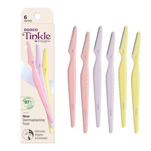 Tinkle Everglow Dermaplane Razor (6 ct), Eyebrow Razor & Face Razors for Women, Peach Fuzz Remover, Dermaplaning Tool, Stainless Steel Blades, Stocking Stuffers