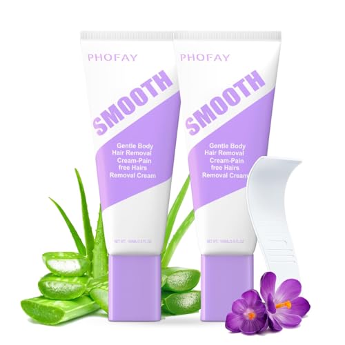 PHOFAY Hair Removal Cream for Sensitive Skin Women and Men –Fast-Acting,Dermatologist-Recommended with Aloe & Hyaluronic Acid for Arms,Legs,Chest,Pubic Area,Stomach,Bikini Line(7.06 Ounce (Pack of 2))